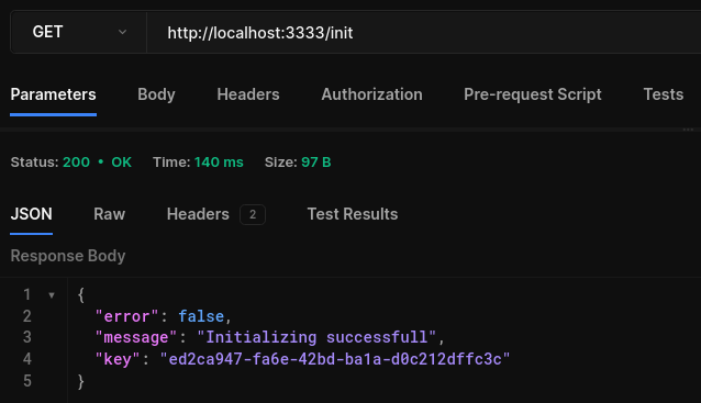To initialise a server make a GET request Note: Don't forgot to save KEY value.